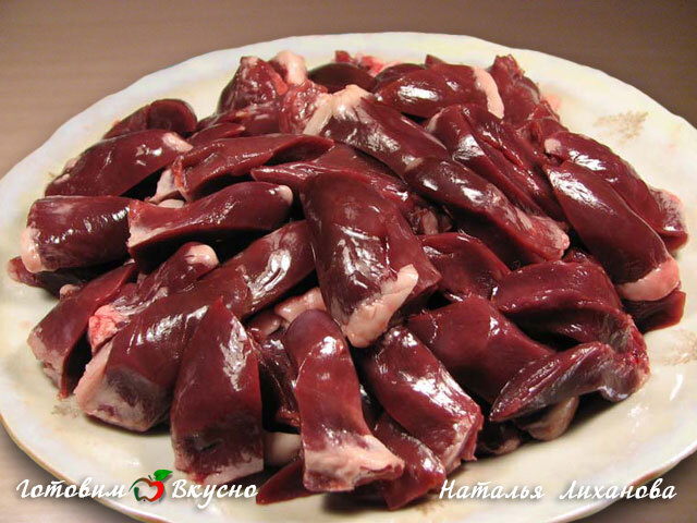 To prepare turkey heart pilaf, thinly slice the onions and fry them in vegetable oil until slightly golden brown.