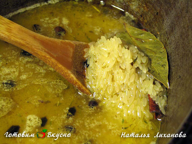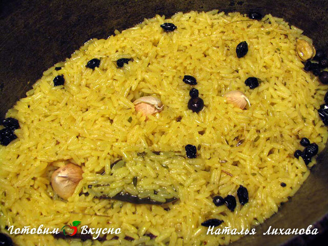 Then add garlic to the rice, cover, and let the pilaf rest.
