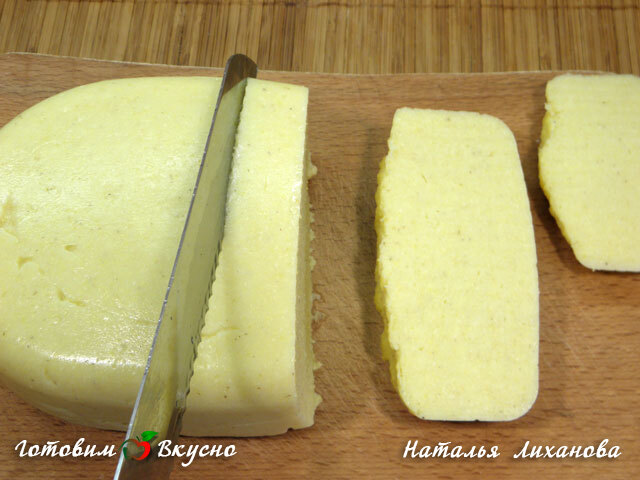 Afterward, remove the polenta from the mold and cut it into slices about 2-3 cm thick. Fry them in butter until well browned.
