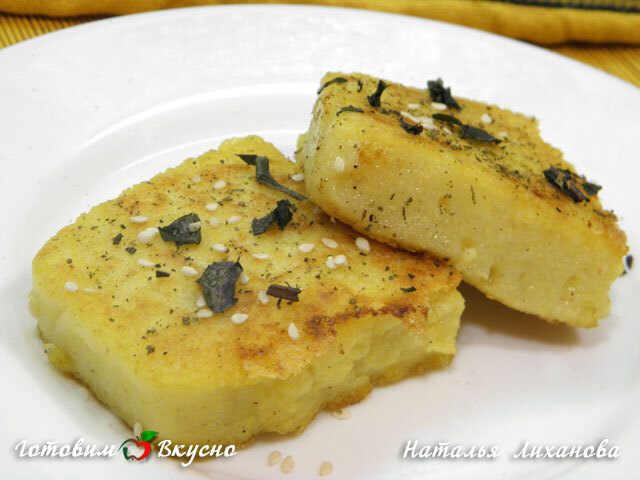 Polenta is a cornmeal porridge, it can be soft or fried. Venetians adore it (probably as much as we love mashed potatoes) and every hostess knows her own special polenta recipes and knows when to serve it fried and when soft. White cornmeal is very good for polenta, it is cooked slowly until it becomes soft. This type of flour is rare for us, we are more familiar with yellow cornmeal. Besides the color, polenta differs in the size of the grain. Coarse-ground flour (bramata) takes 40 minutes to cook. Polenta made from precooked grain (lampo) takes only a few minutes. I made a version of fried polenta from coarse-ground yellow cornmeal. This polenta can be served as a side dish to meat, with a spicy snack, or with vegetables. To prepare soft polenta, the main thing is not to let it thicken. In this case, it is necessary to use more water. Polenta can be cooked not only in water, but also in broth, or add butter or grated Parmesan cheese.