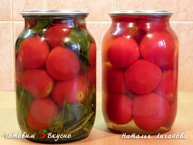 Add salt to water and bring to a boil. Pour the boiling brine over the tomatoes. Cover the jars with pre-sterilized lids and sterilize. For one-liter jars - 10 minutes, three-liter jars - 15-20 minutes. Seal. These
