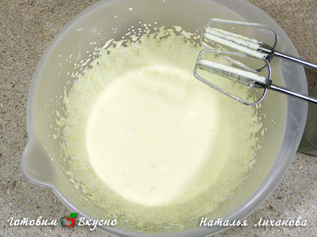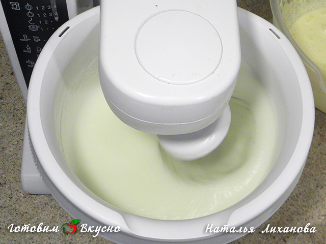 Meanwhile, add the remaining sugar to the yolks and beat them well until pale and fluffy.