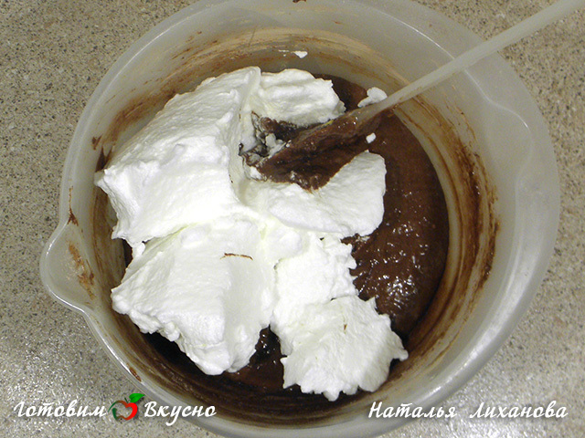 Lastly, fold in the beaten egg whites gently with a spatula to keep the batter light and airy.