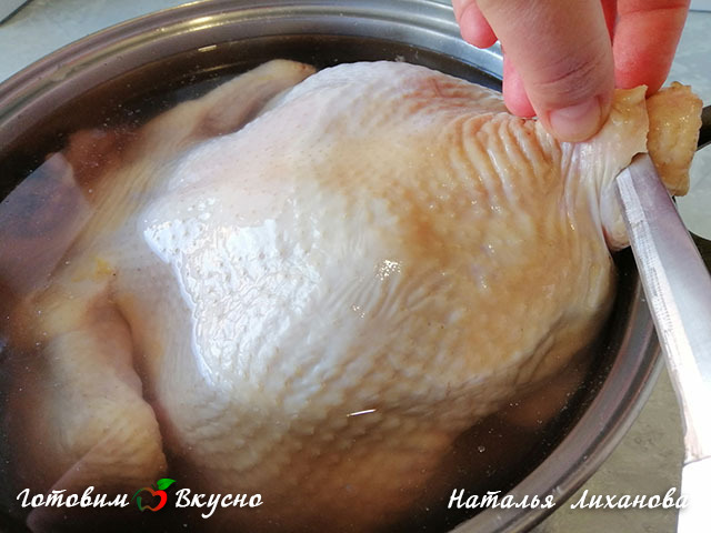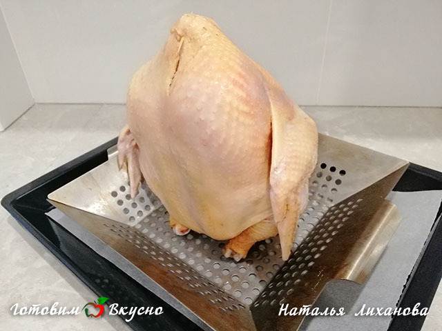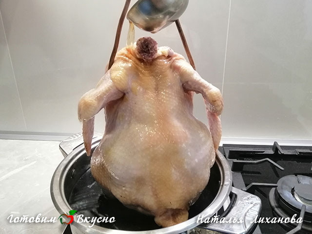 This recipe for cooking chicken echoes the famous Chinese recipe "Peking duck", but with chicken it's much simpler, although it will take some time. In this recipe, the chicken is marinated in a cold brine for 12-15 hours, which gives us perfectly salted meat in the finished dish. The chicken turns out very juicy, and the crispy skin... well, you know!!