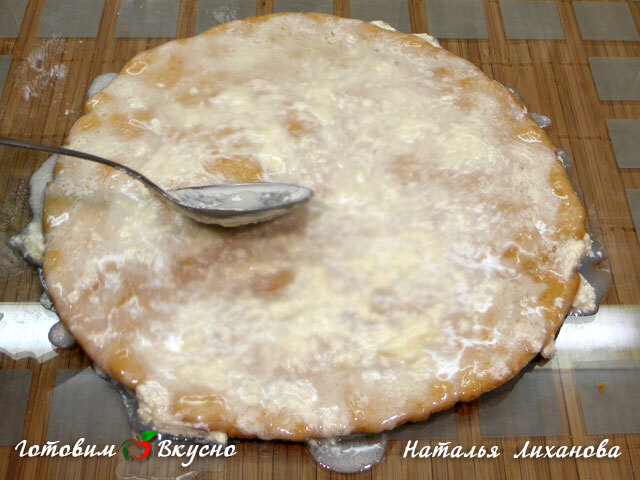 Bake the layers. Divide the dough into approximately 8-9 small balls. Roll out the layers thinly (about 2 mm) and place them in a form. Dust the pan with flour each time.