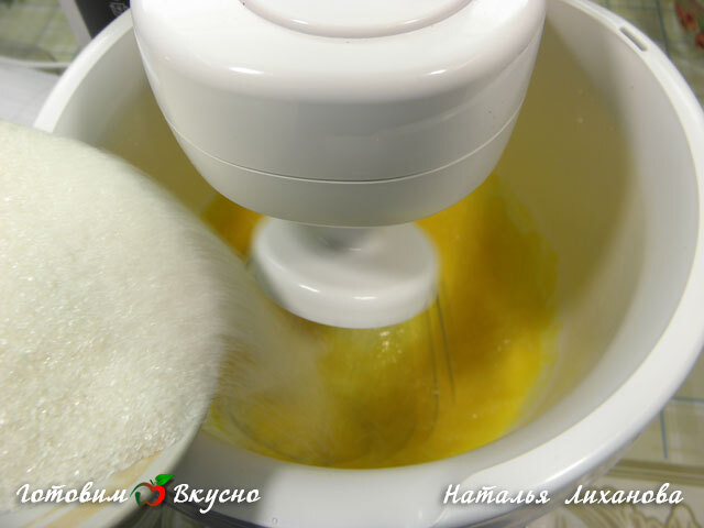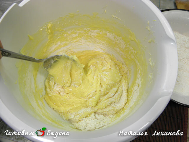 Sift the flour together with the baking powder, add it to the beaten yolks. Knead the dough by hand.