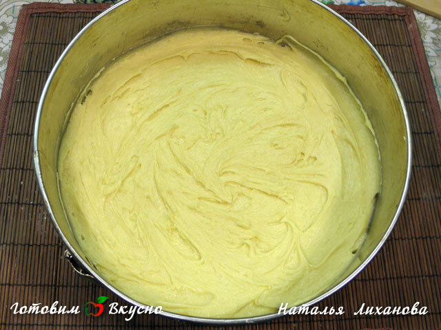 Line the bottom of a 10-inch diameter springform pan with parchment paper, grease it with butter, and spread the dough in it, smoothing it out. Bake in the oven at 390°F for 20 minutes, until lightly golden brown.