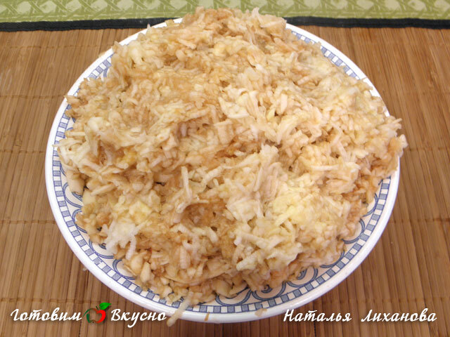 I blended the apples to speed up the process. However, it's better to use a grater, in this case, the apple mixture becomes uniform and juicy.