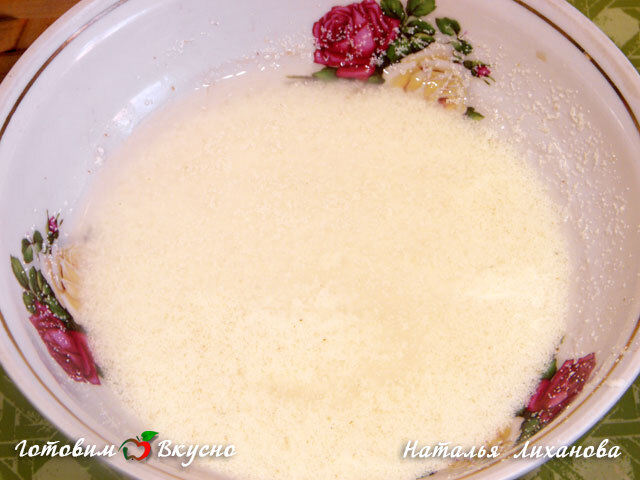 To prepare the cottage cheese casserole, pour semolina with warm water so that it covers the cereal, and let it soak for 40-60 minutes.