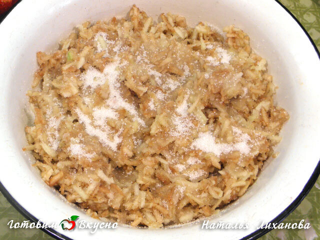 To prepare apple jam, grate the apples on a large grater, add sugar, mix slightly, and let sit for 15-20 minutes to release their juice.