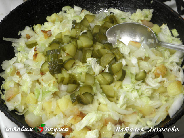 Heat sunflower and sesame oil in a skillet. Fry the potatoes until golden brown. Add the cabbage and leeks and sauté together for 2-3 minutes.