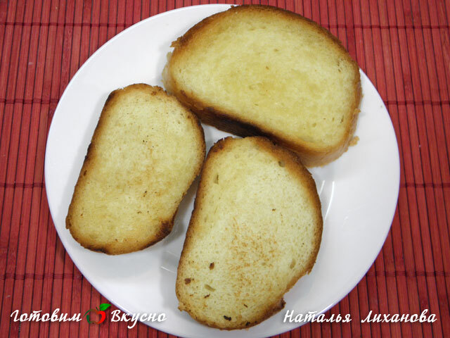 Pour préparer les tartines à l'oignon, aux tomates et aux herbes, faire dorer les morceaux de baguette dans du beurre d'un côté.