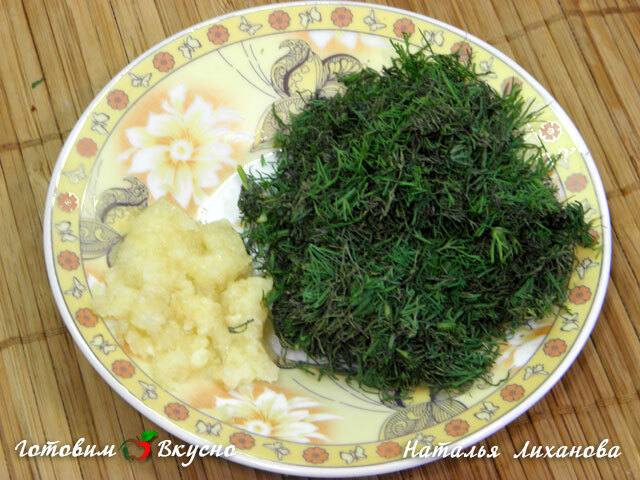 Pour préparer les rouleaux de lavash à l'ail et au fromage, commencez par hacher l'ail et l'aneth.