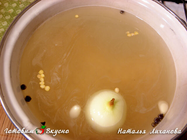 Pour préparer la soupe aux pois avec poitrine fumée, bien rincer les pois, éplucher les oignons et l'ail, les mettre dans une casserole, ajouter du poivre noir et couvrir d'eau froide. Laisser cuire jusqu'à ce que les pois soient tendres (ils doivent être bien cuits) sur feu très doux pour obtenir un bouillon savoureux et corsé.