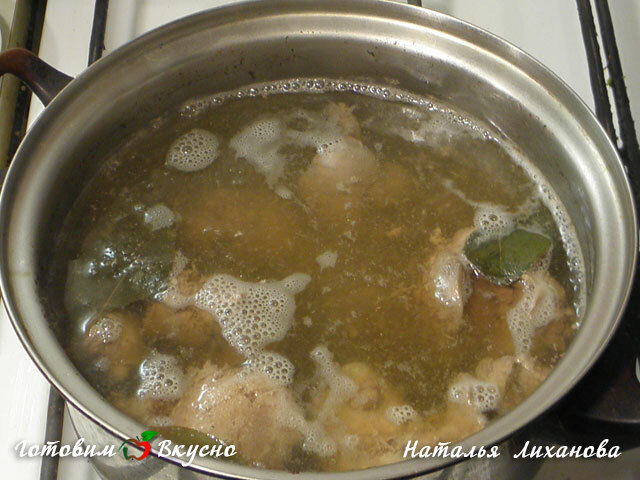 Pour préparer le pâté de foie au gingembre et aux pruneaux, rincer bien le foie à l'eau froide. Ensuite, le mettre dans de l'eau bouillante, ajouter une feuille de laurier et cuire pendant 20-25 minutes. Garder une partie du bouillon (environ 300 ml) en le versant dans un récipient séparé. Jeter le reste et laisser le foie refroidir sous un couvercle.