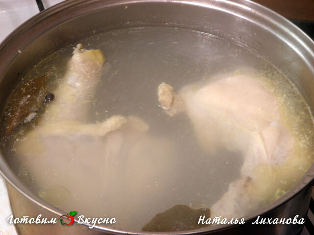 Pour préparer la soupe de sarrasin aux champignons, prenez des cuisses de poulet, lavez-les bien, mettez-les dans une casserole et couvrez de 3 litres d'eau froide. Ajoutez du poivre aromatique, une pincée de sel, une feuille de laurier et une gousse d'ail pelée. Faites bouillir le bouillon à feu doux pendant 40 minutes après ébullition, en écumant.