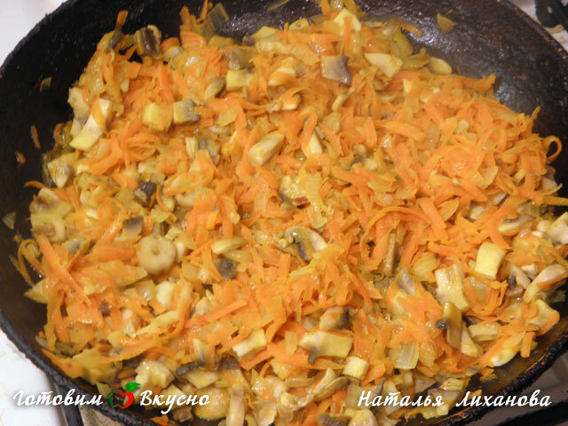 Faites légèrement revenir l'oignon, la carotte et les champignons dans de l'huile végétale.