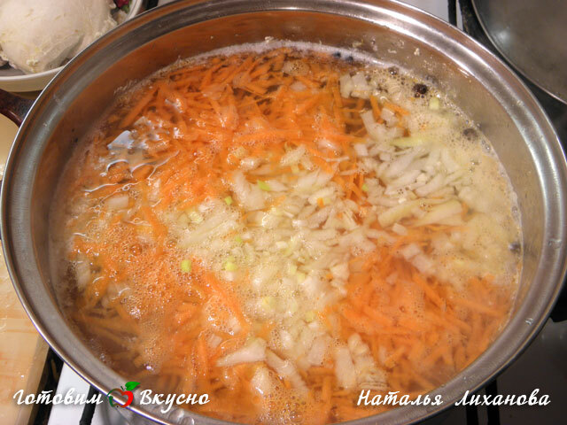 Ajoutez les pommes de terre coupées en dés dans le bouillon bouillant, puis les carottes et l'oignon. Faites cuire jusqu'à ce que les pommes de terre soient tendres.