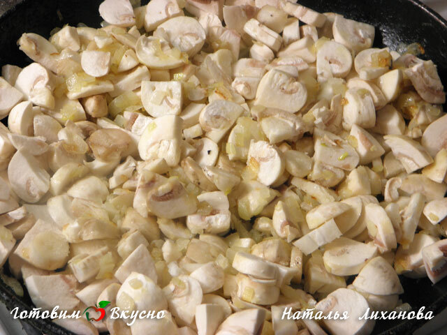 Émincer finement l'oignon et le faire revenir dans du beurre jusqu'à ce qu'il soit translucide. Ajouter les champignons coupés à l'oignon, saler légèrement et cuire jusqu'à ce que tout le liquide se soit évaporé.