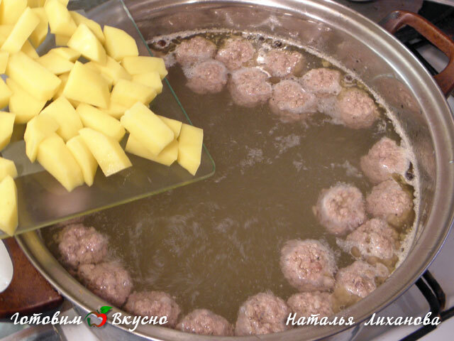 Ensuite, ajouter les pommes de terre coupées en dés et laisser mijoter pendant 15-20 minutes.