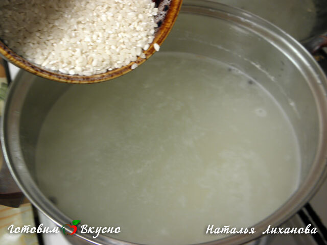Ajoutez du riz dans le bouillon bouillant et faites cuire 10 minutes.
