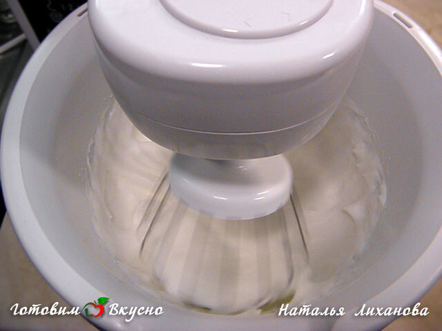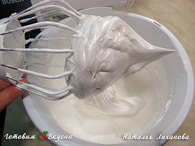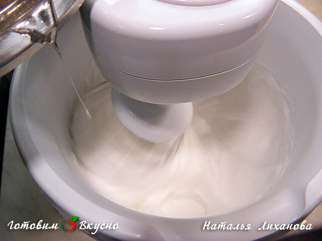 Затем одновременно взбивая белки, тонкой струйкой добавляем сироп. После того как весь сироп вылит продолжаем взбивать еще некоторое время, до получения плотной массы. Вот и все!