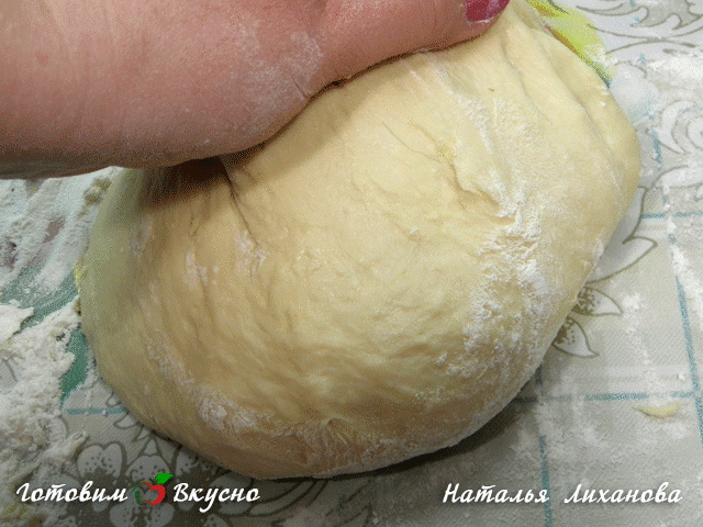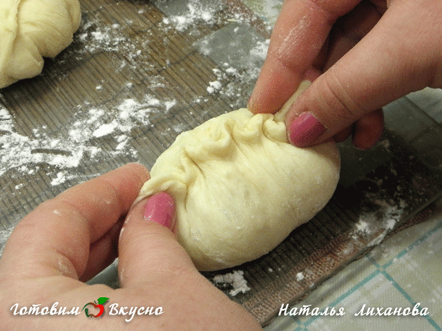 А затем собираем защипанные края в центре, получившийся колобок немного прижимаем, делаем его более плоским.