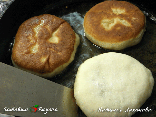 В хорошо разогретую сковороду с маслом выкладываем беляши швом вниз, они должны свободно лежать на сковороде. Жарим беляши до румяной корочки. С одной и с другой стороны. Масло жалеть не нужно, в хорошо разогретом масле беляши быстро прожариваются и не успевают напитаться маслом.