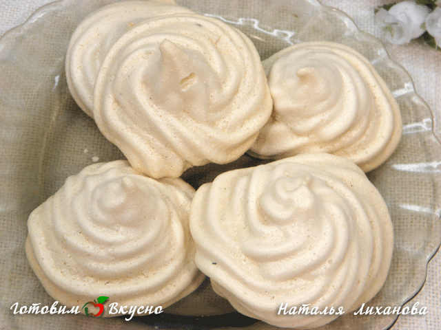 Безе или меренги готовы! Их можно, по-желанию, украсить взбитыми сливками или кремом.