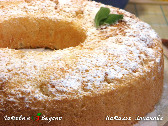 Рецепт воздушного, нежного, просто таки ангельского бисквита. Его так и называют «Ангельский бисквит», «Шифоновый бисквит», бисквит «Пища ангелов»… Белоснежный пористый бисквит с нежной корочкой, этот рецепт вам пригодится, если нужно использовать оставшиеся белки после приготовления мороженого, яичного ликера и др. Такой бисквит прекрасно сочетается со сливками и с ягодами. Чтобы бисквит хорошо поднялся и не опал в процессе охлаждения, его пекут в форме, не смазанной и не посыпанной ничем, тесто должно зацепиться за стенки формы (поэтому силиконовая форма не подойдет). Но основной проблемой будет использование формы большого диаметра. Тогда середина коржа немного провалится под собственной тяжестью еще при выпекании. Если использовать форму в виде кольца с отверстием посередине или прямоугольную этого не произойдет. И, чтобы серединка не проваливалась при остывании, форму переворачивают вверх дном. Я использовала разъемную форму с отверстием посередине диаметром 24 см.