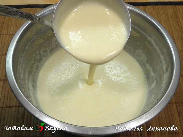 Тесто получается средней густоты. Если тесто получилось густое, можно разбавить его молоком.