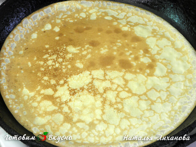 Выпекаем блины на хорошо разогретой сковороде, смазывать маслом ее не нужно.