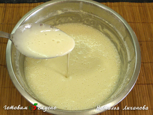Чтобы приготовить блины на сыворотке, подогреваем сыворотку до теплого состояния и добавляем муку. Хорошо перемешиваем, затем добавляем соль, сахар, соду и масло и снова хорошенько все перемешиваем. Тесто должно обязательно постоять, минимум 1 час.