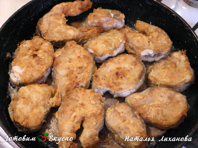 Обжариваем кусочки хека с каждой стороны примерно по 3-4 мин до ровного золотистого цвета.