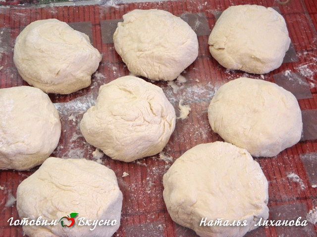 Тесто делим на шарики размером как хорошая мандаринка (примерно по 100-120 г)