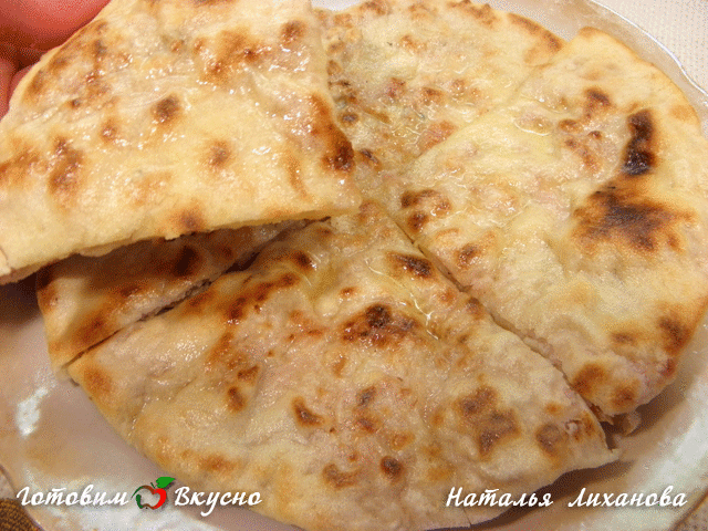 Рецепт блюда кабардино-балкарской кухни. Это такие тонкие лепешки, которые жарятся на сухой раскаленной сковороде, а потом обильно смазываются сливочным маслом. Они немного напоминают всем нам знакомый чебурек, но лишь немного. Начинки могут быть разными мясо с луком, сыр с картофелем, сыр с зеленью, с пюре из красной фасоли, с тыквой… На родине хычинов их обмакивают в бульон или суп и делают практически каждый день. Очень вкусно и сытно!