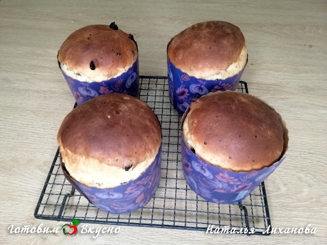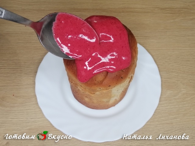 Пекла эти куличи в прошлом году и рецепт мне очень понравился. Куличи получаются не сухие, очень мягкие с творожным вкусом. Из данного количества ингредиентов получилось 4 кулича по 250 г. И если у вас не хватает времени, можно быстро приготовить к этим куличам яркую ягодную глазурь.