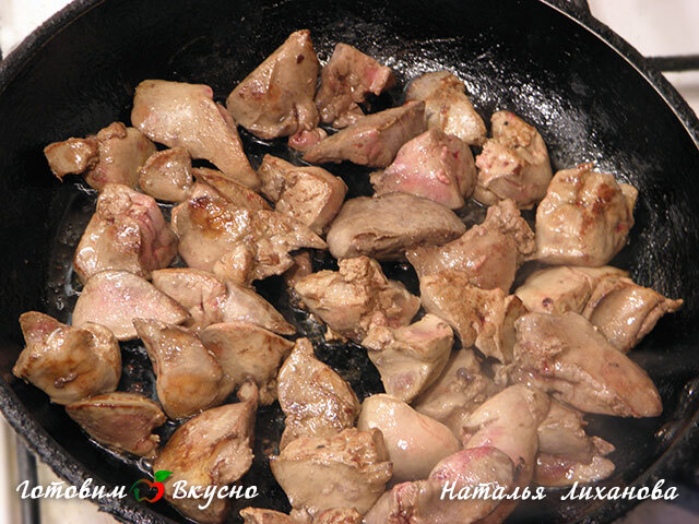 Чтобы приготовить куриную печень с тыквой и яблоками хорошенько моем печень и убираем все ненужное. Режем на средние кусочки. В сковороду наливаем растительное масло, разогреваем его и выкладываем подготовленную печень. Печень немного присаливаем и жарим до выпаривания воды.