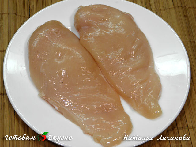 Готовим куриные грудки. Для начала необходимо очистить куриное филе от пленок, жил и жира. Малое филе нужно отрезать, с ним грудки будут слишком толстые и могут не прожариться.