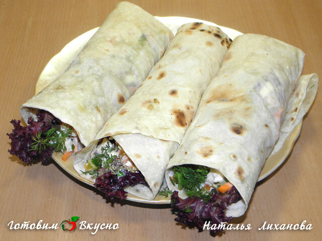 Лаваш с куриным мясом и овощами