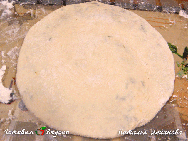 Теперь аккуратно (чтобы не разорвать тесто) раскатываем «улитку» до необходимого размера (размера сковороды).