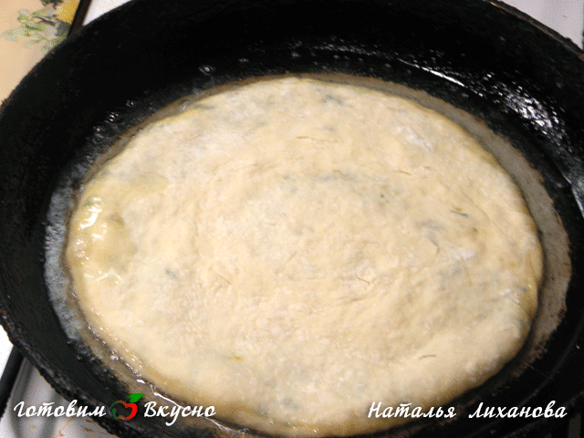 Первая сырная лепешка готова, таким же образом дожариваем две остальные.