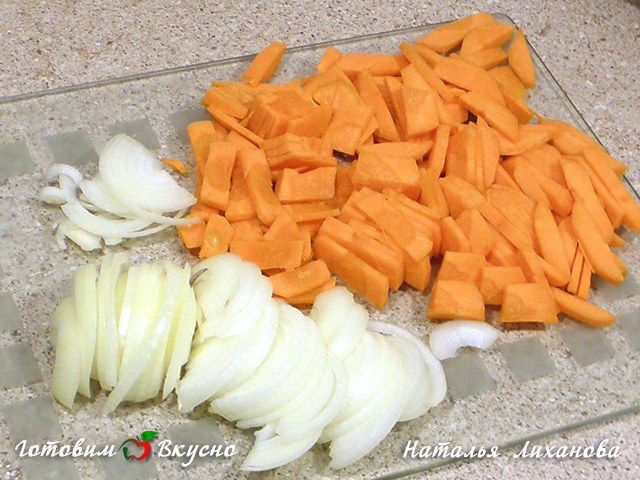 В готовом блюде морковь будет похрустывать (я очень это люблю), если вам это не нравится можете натереть ее на терке.