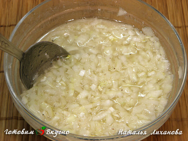Луковую салатную заправку перемешиваем и оставляем при комнатной температуре на 20 мин.