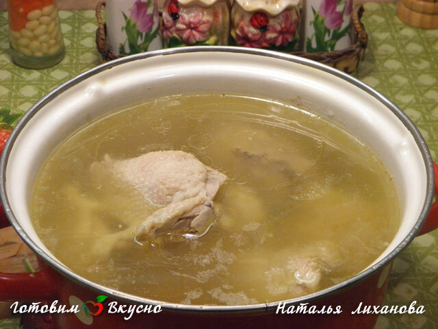 Достаем мясо из бульона и тоже поджариваем его до золотисто-коричневой корочки.