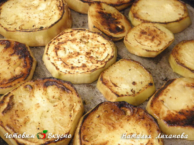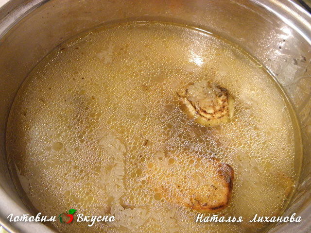 Пока варится бульон, занимаемся рисом и овощами. Рис промываем несколько раз, до чистой воды. Заливаем обычной водой и оставляем на 15 минут. Баклажаны чистим, нарезаем пластинами толщиной 0,5-1 см, солим и оставляем на 15 минут,затем хорошо обмакиваем и жарим на подсолнечном масле до золотисто-коричневой корочки.
