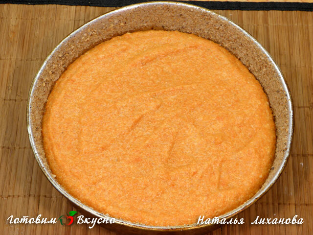 Форму для запекания смазываем сливочным маслом и немного присыпаем панировочными сухарями. Выкладываем морковную массу в форму и ставим в духовку. Выпекаем 30-35 мин при температуре 180 г.