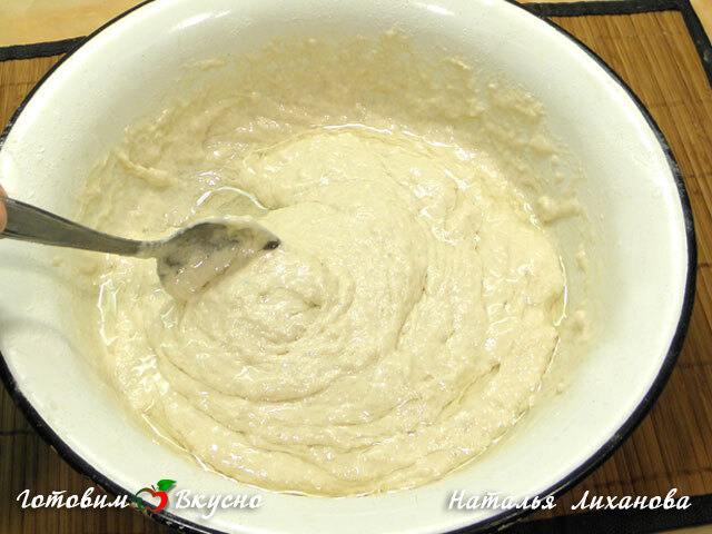 Когда тесто поднялось, размешиваем его ложкой и приступаем к выпеканию оладий. На разогретую сковороду с маслом ложкой выкладываем тесто (здесь нужна небольшая сноровка)