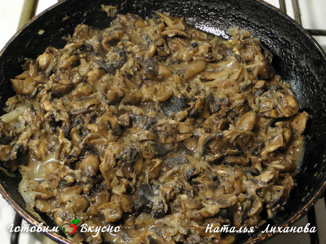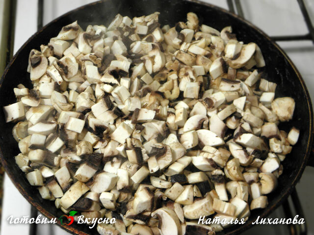Для приготовления грибного паштета грибы промываем, обсушиваем и мелко нарезаем. Лук нарезаем мелкими кубиками, обжариваем до прозрачности, добавляем к нему грибы и жарим минут 10.