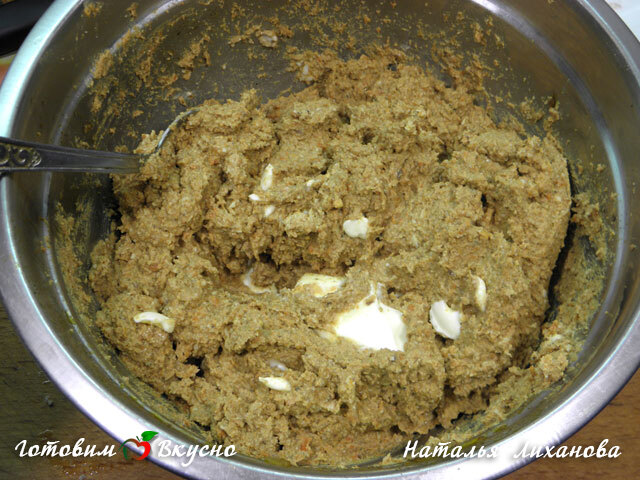 Готовые овощи и печень, а также очищенные яйца перекручиваем в блендере. Добавляем кусочек мягкого масла и перемешиваем.